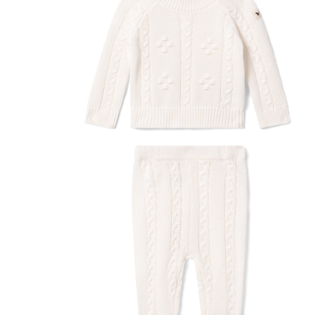 Baby Braided Pointelle Pompom Knit 2 PCS