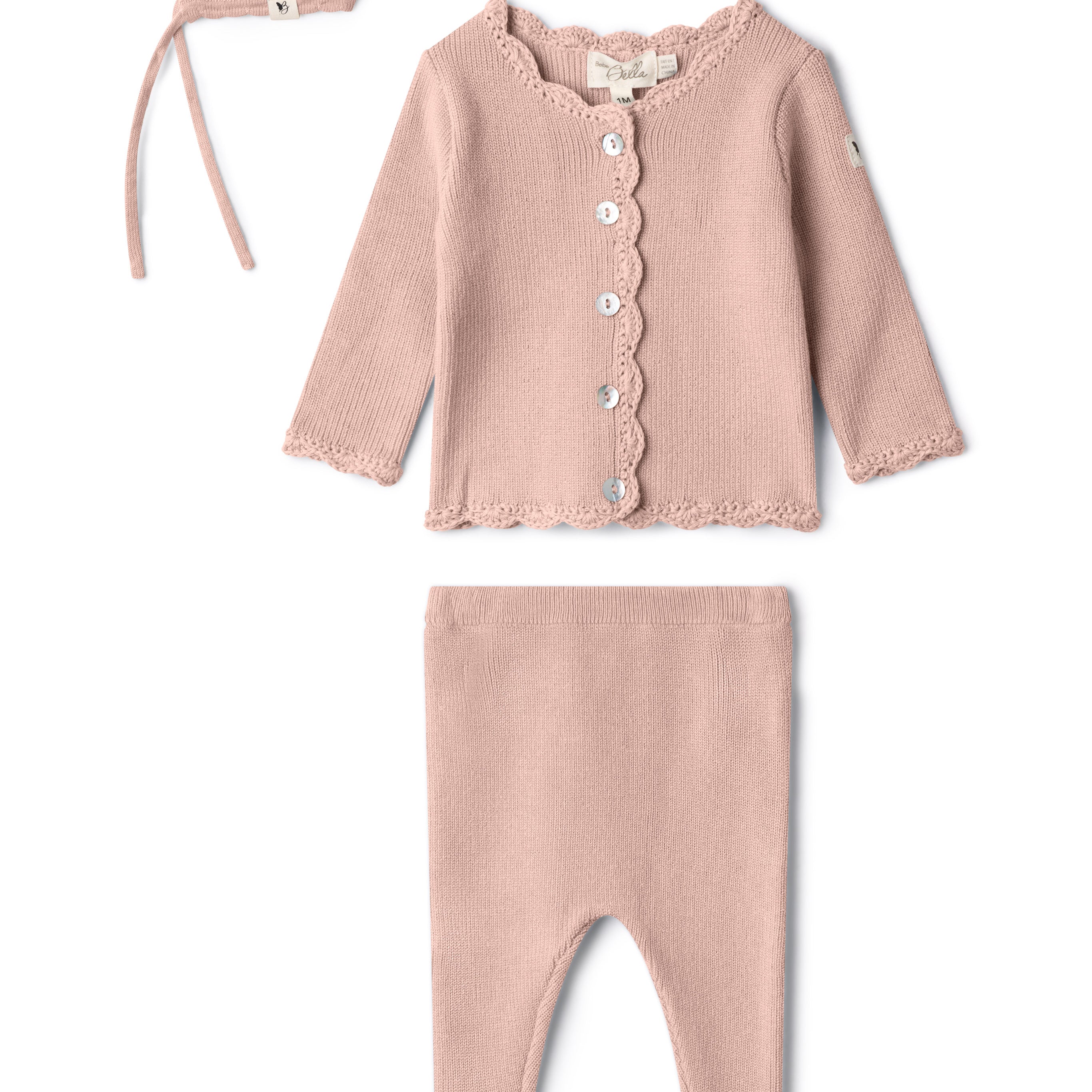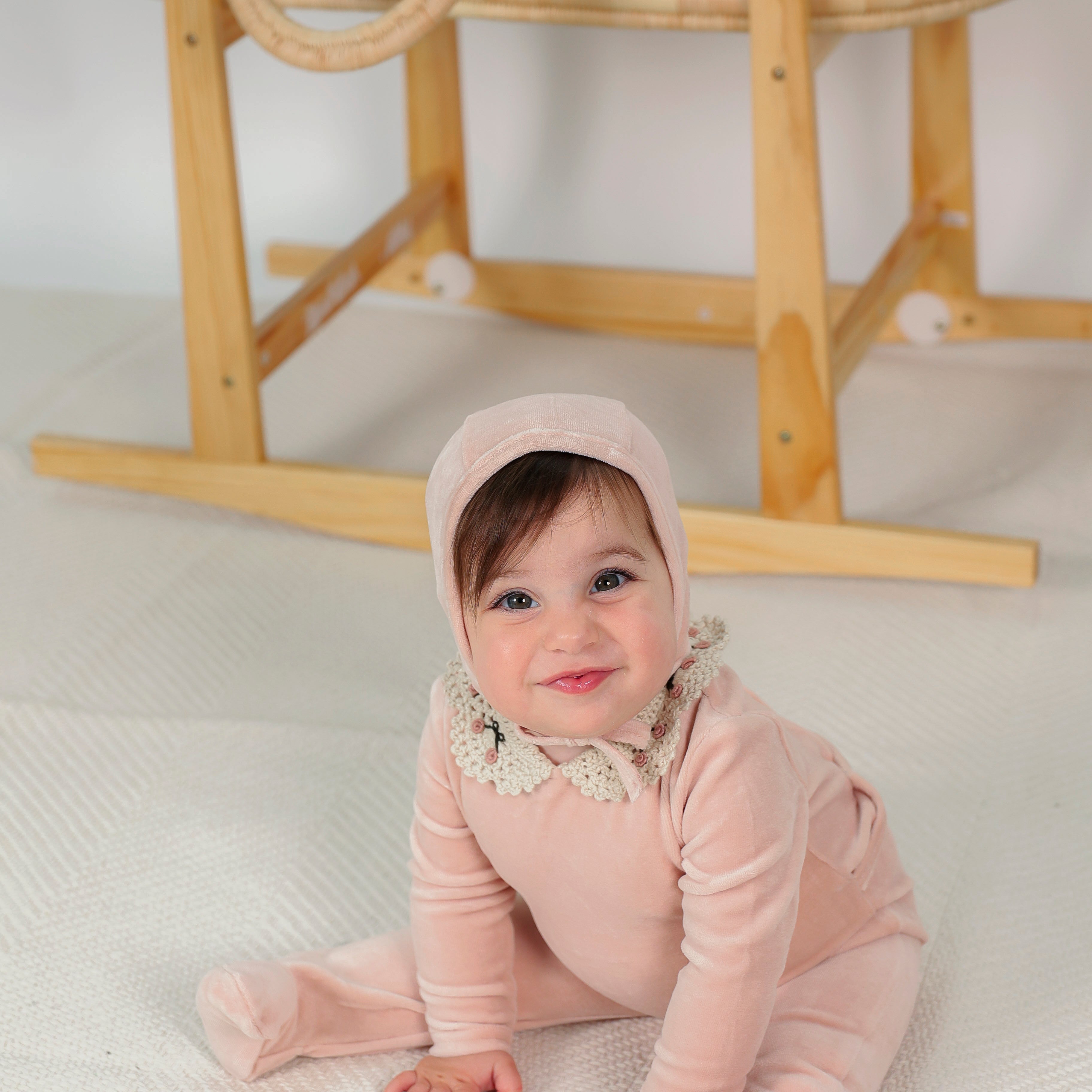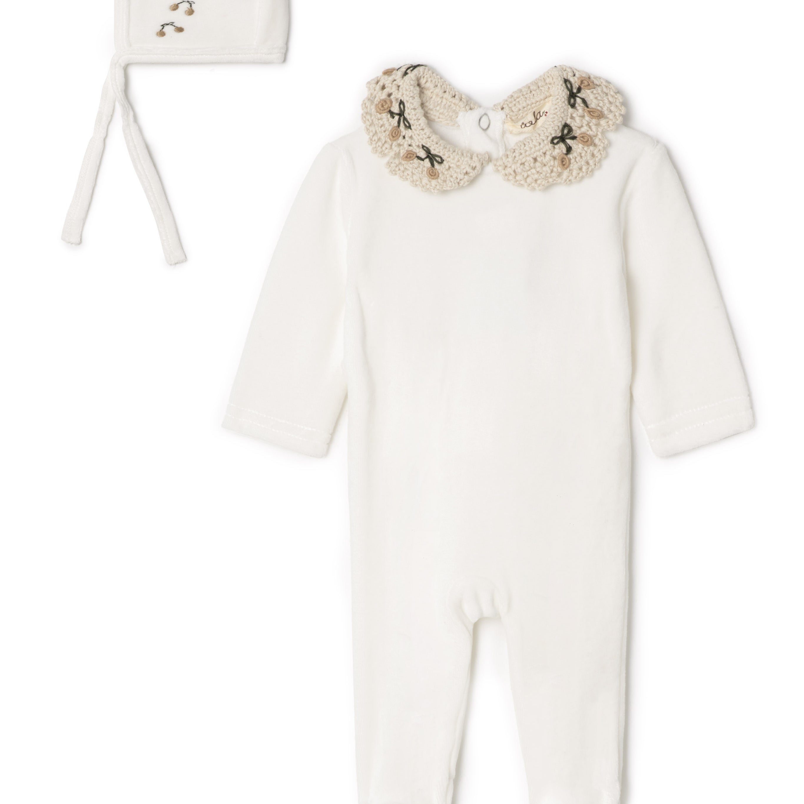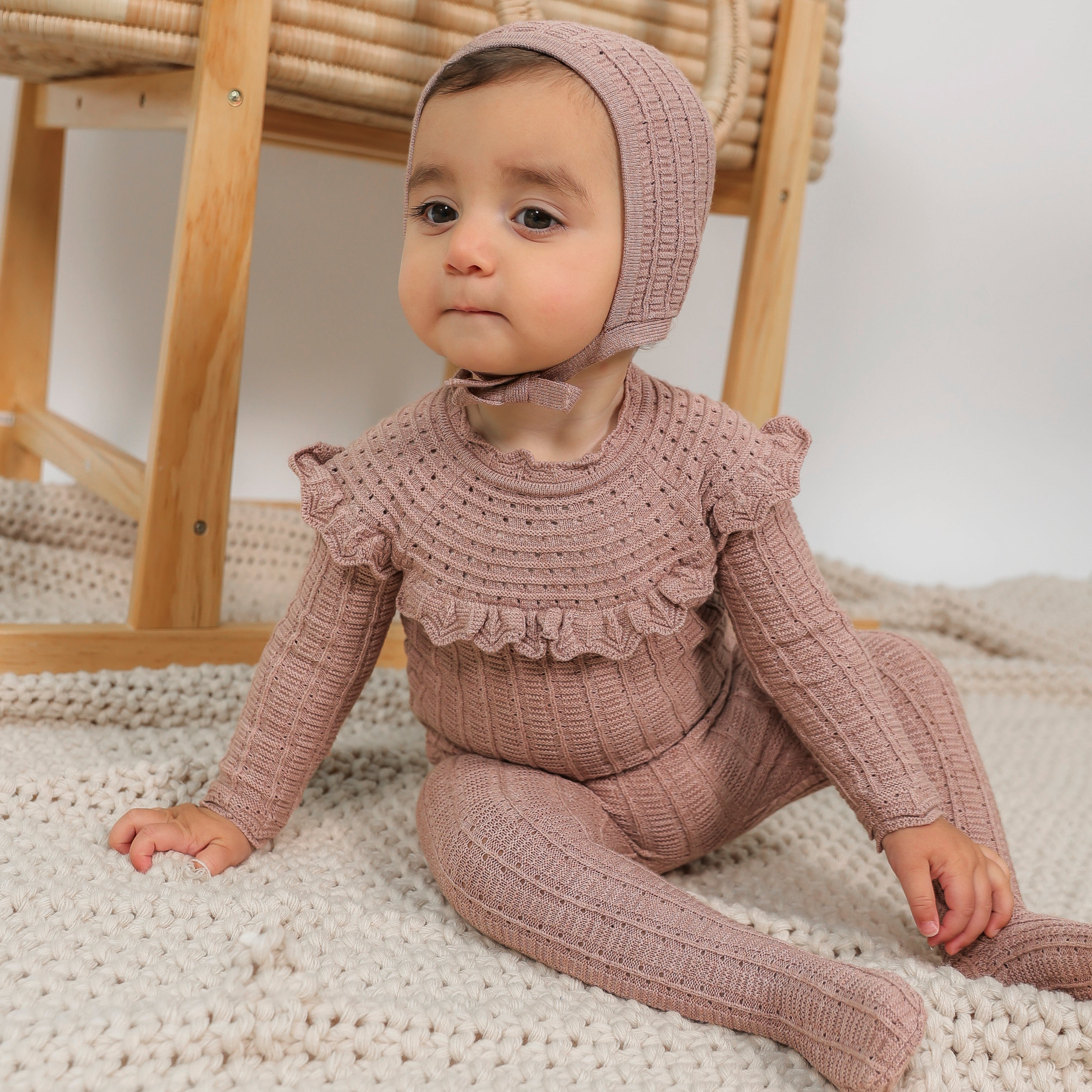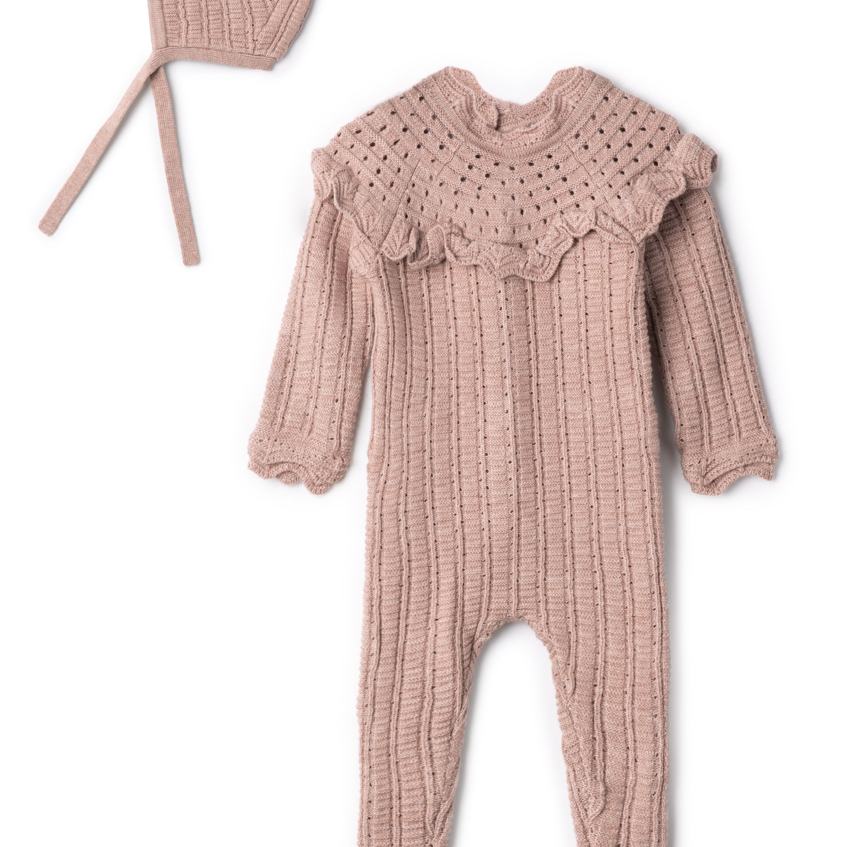 Pointelle Knit Baby Girl Stretchy With Bonnet