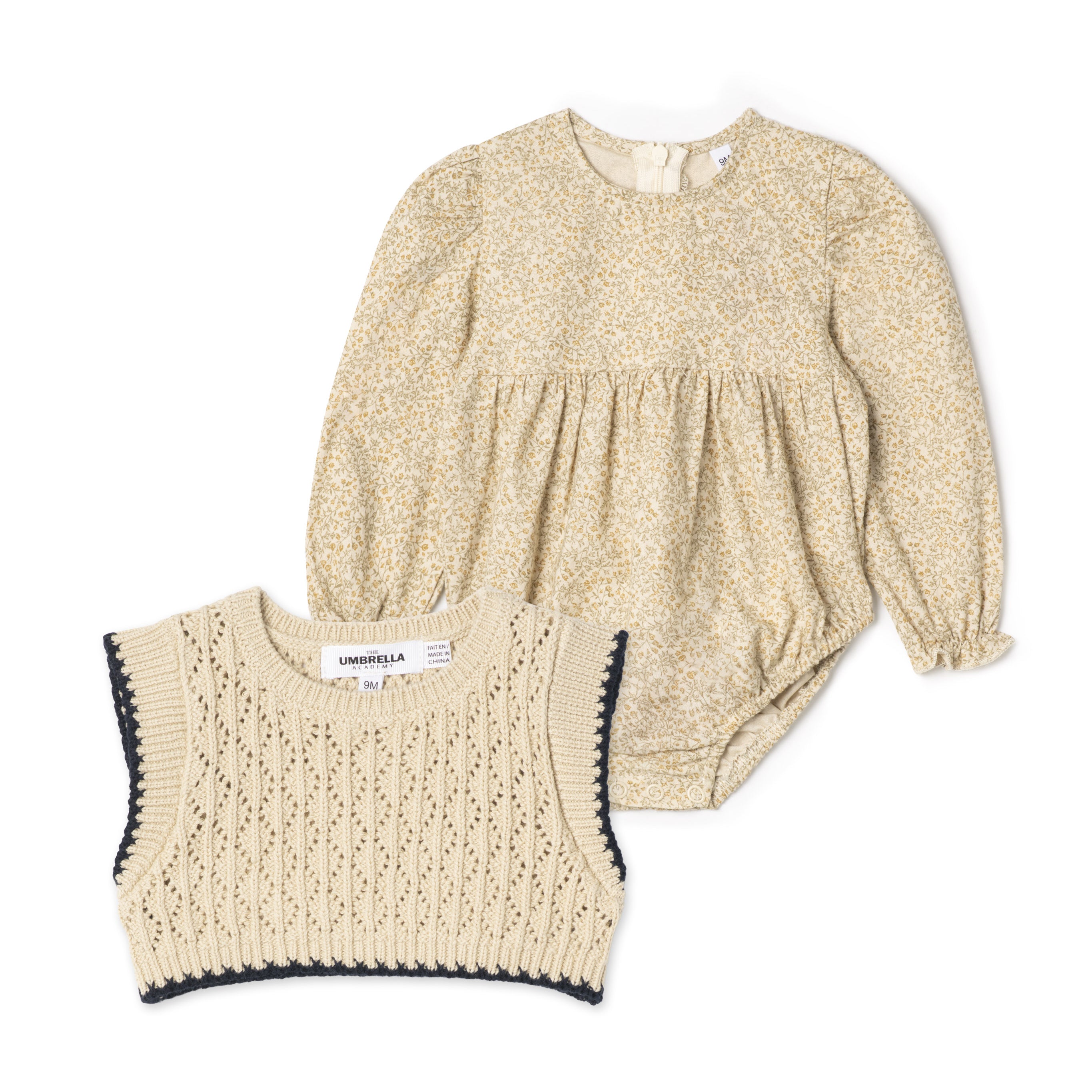 Baby Floral Gauze Blouse With Knit Overall And Knit Cardigan