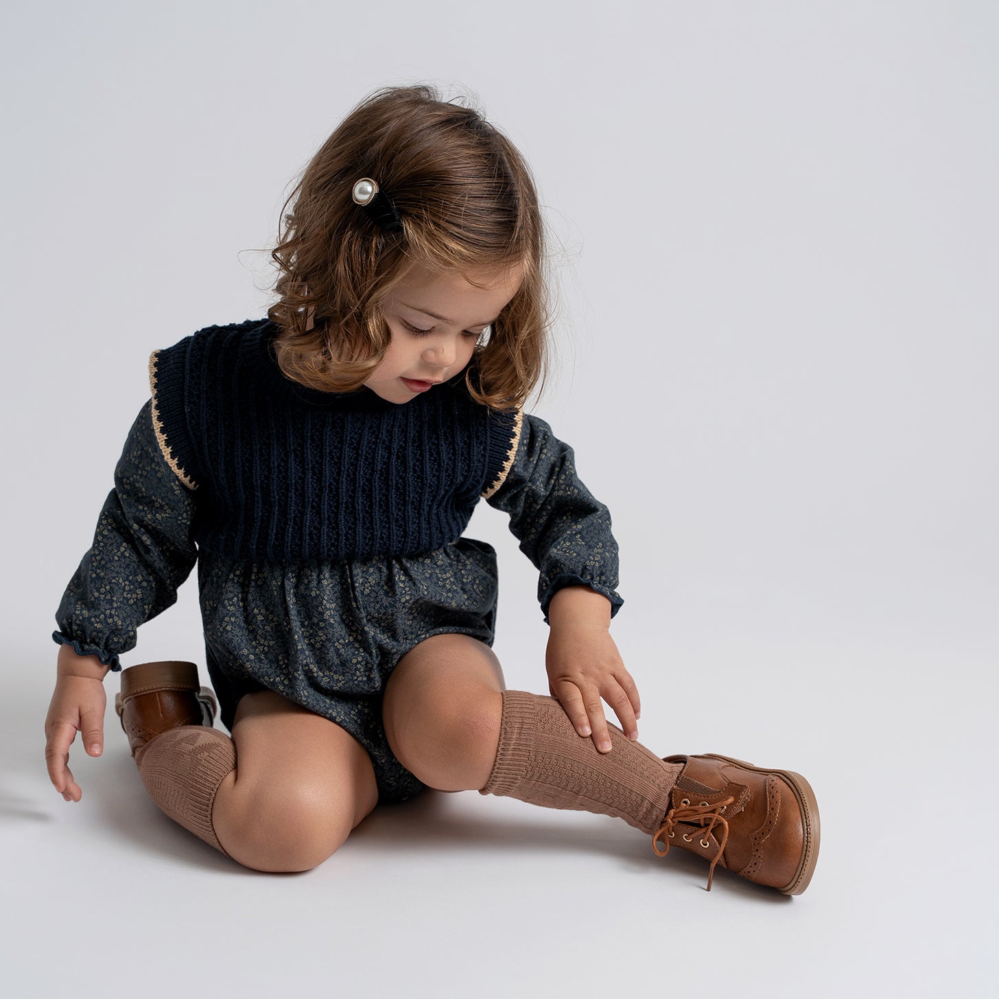 Baby Romper W/Scallop Yoke on front & back Elastic Cuffs