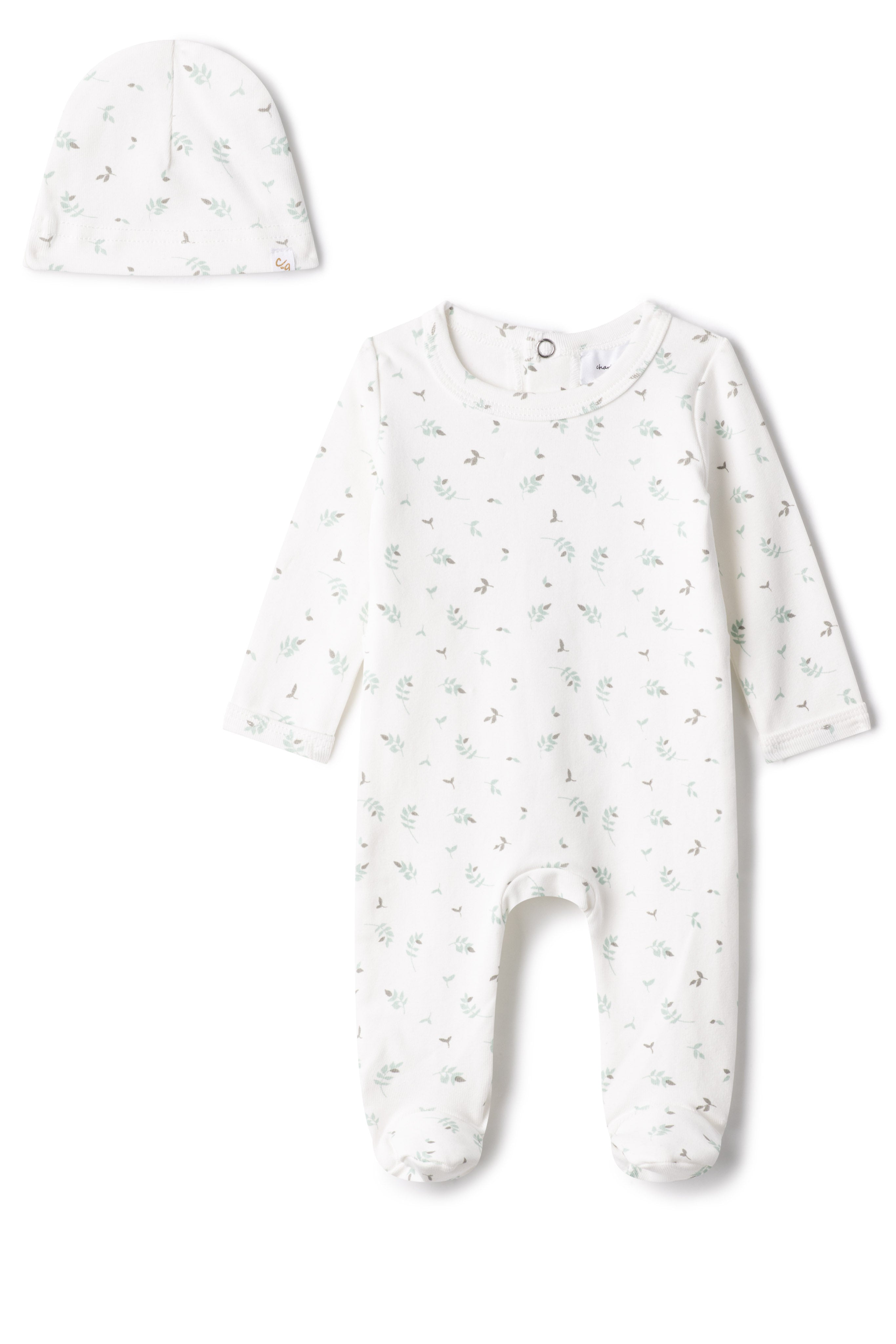 Baby Fine 1X1 With Leaves Print Romper Set