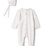 Baby Cotton Velour Romper Set With Scallop Detail