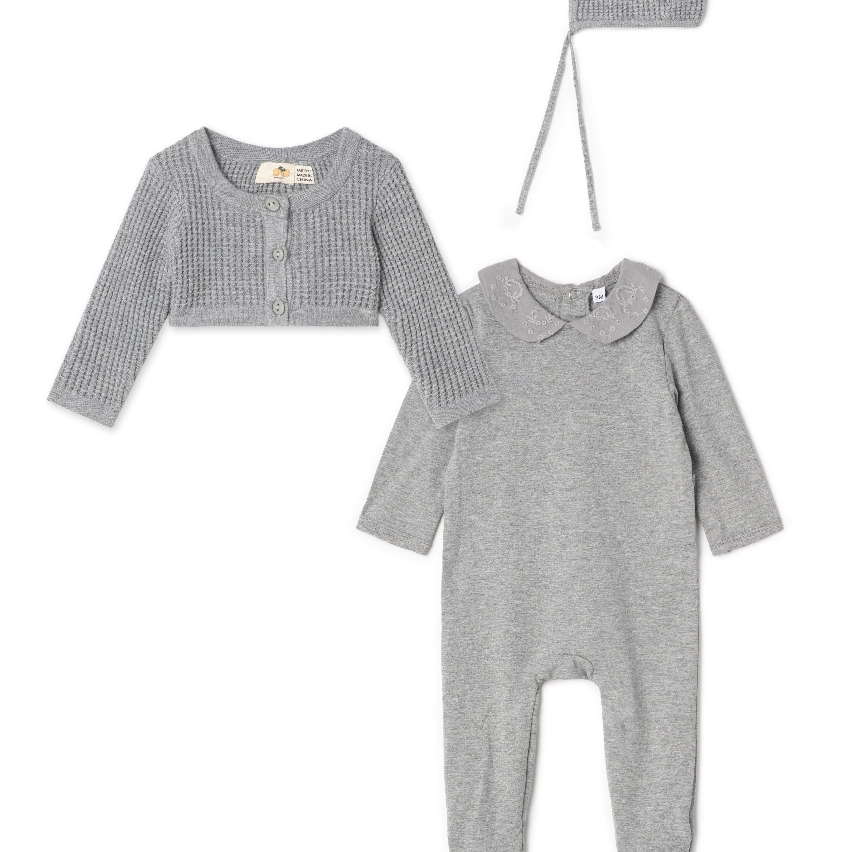 Baby Cotton Stretchie And Cardi With Bonnet