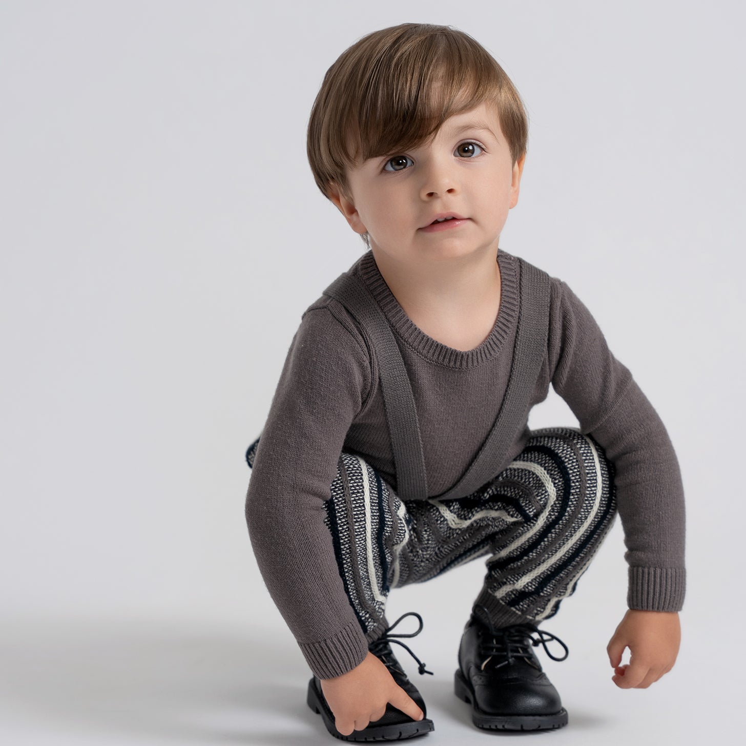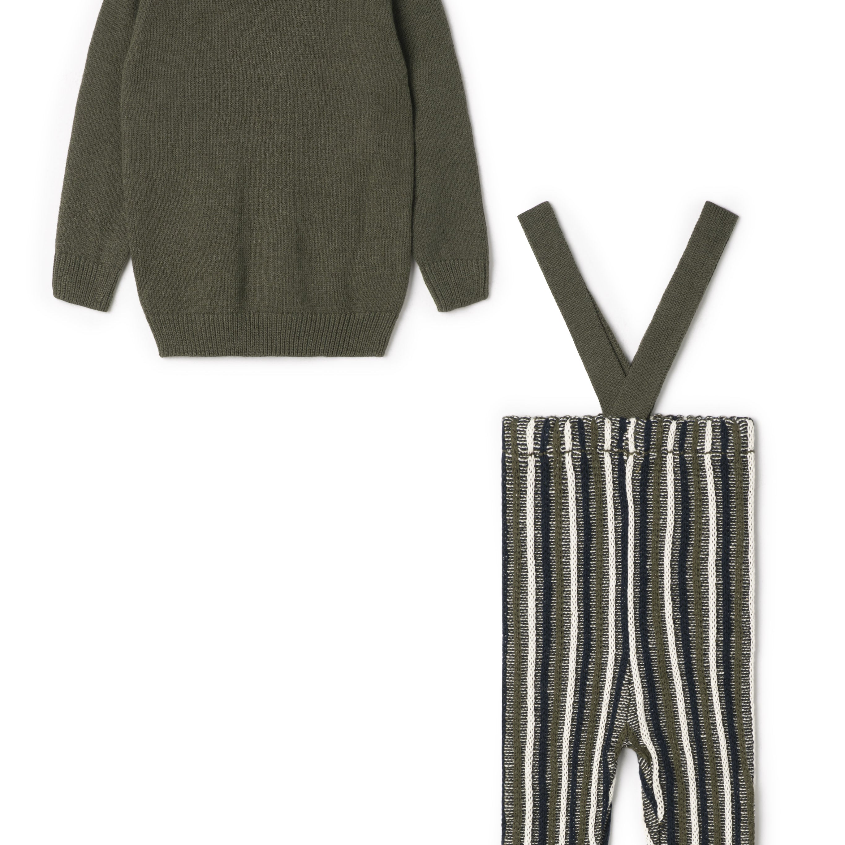 Boys Knit Sweater And Overall With Color Knit Stripes